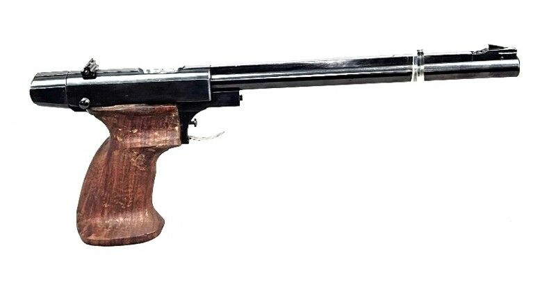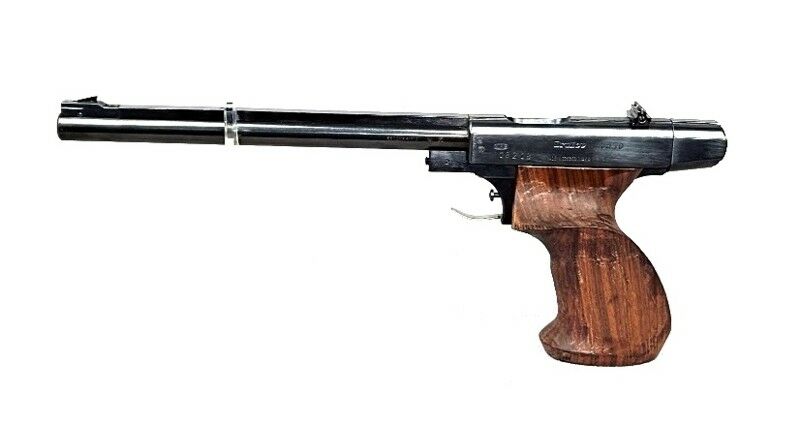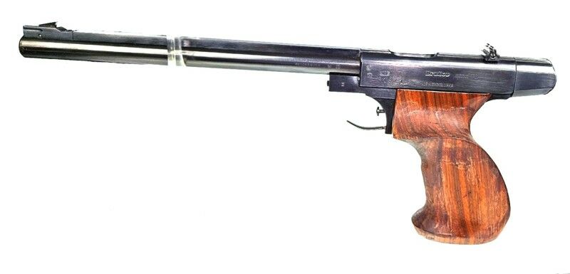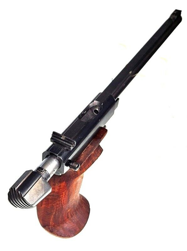 Einzelladerpistole   Lauf: LL ca. 247mm, Züge und Felder scharf. Gesamtlänge: Ca. 365mm Visier: Offen; Balkenkorn in Höhe verstellbar; Reckeckkimme in... ...weiterlesen