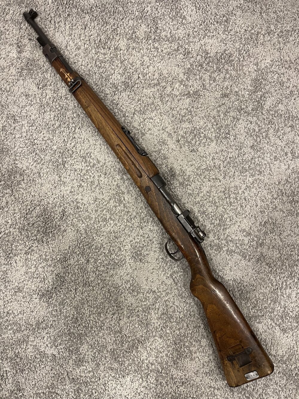 Hier kommt ein technisch gut erhaltener Peru Mauser / FN Fertigung zum Verkauf. schaft ist durch Überarbeitung problemlos zu verbessern. gültiger Beschuss, Lauf gut. ...weiterlesen