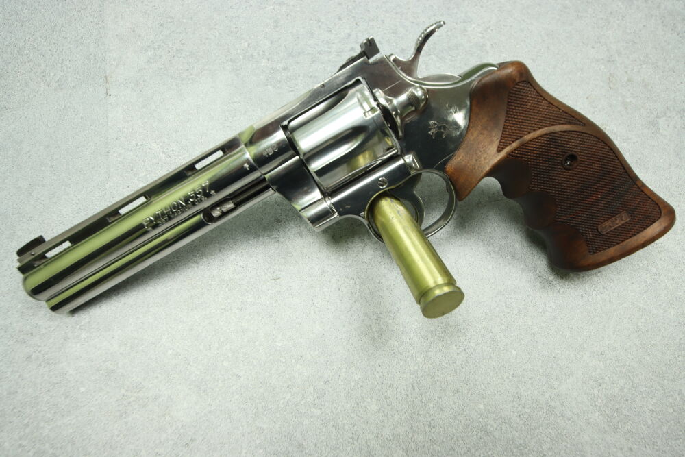Details: Kaliber: .357 Magnum (auch .38 Special) Lauf: 6 Zoll, ventiliert & voll unterlegt Seriennummer: PN08XXX → Produktion 1995 Griffe: KN Zubehör: Keine Box/Papiere (leider), abe... ...weiterlesen