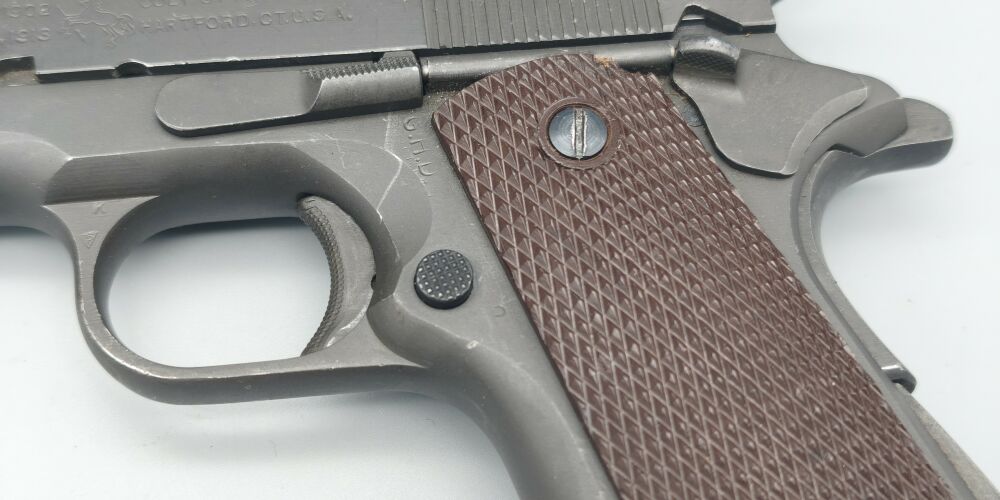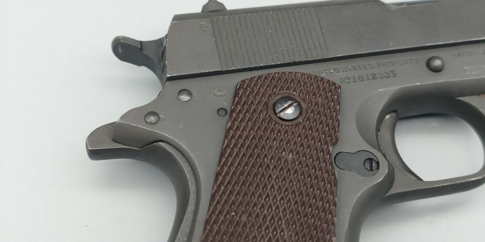 Original Colt 1911A1 im Kaliber .45 ACP der US Army aus der Zeit des 2. Weltkrieg. Baujahr laut Colt 1944. Für das alter hervorragender Zustand. Originale mattgraue Werksphosphatierung. NICHT neubrüni... ...weiterlesen