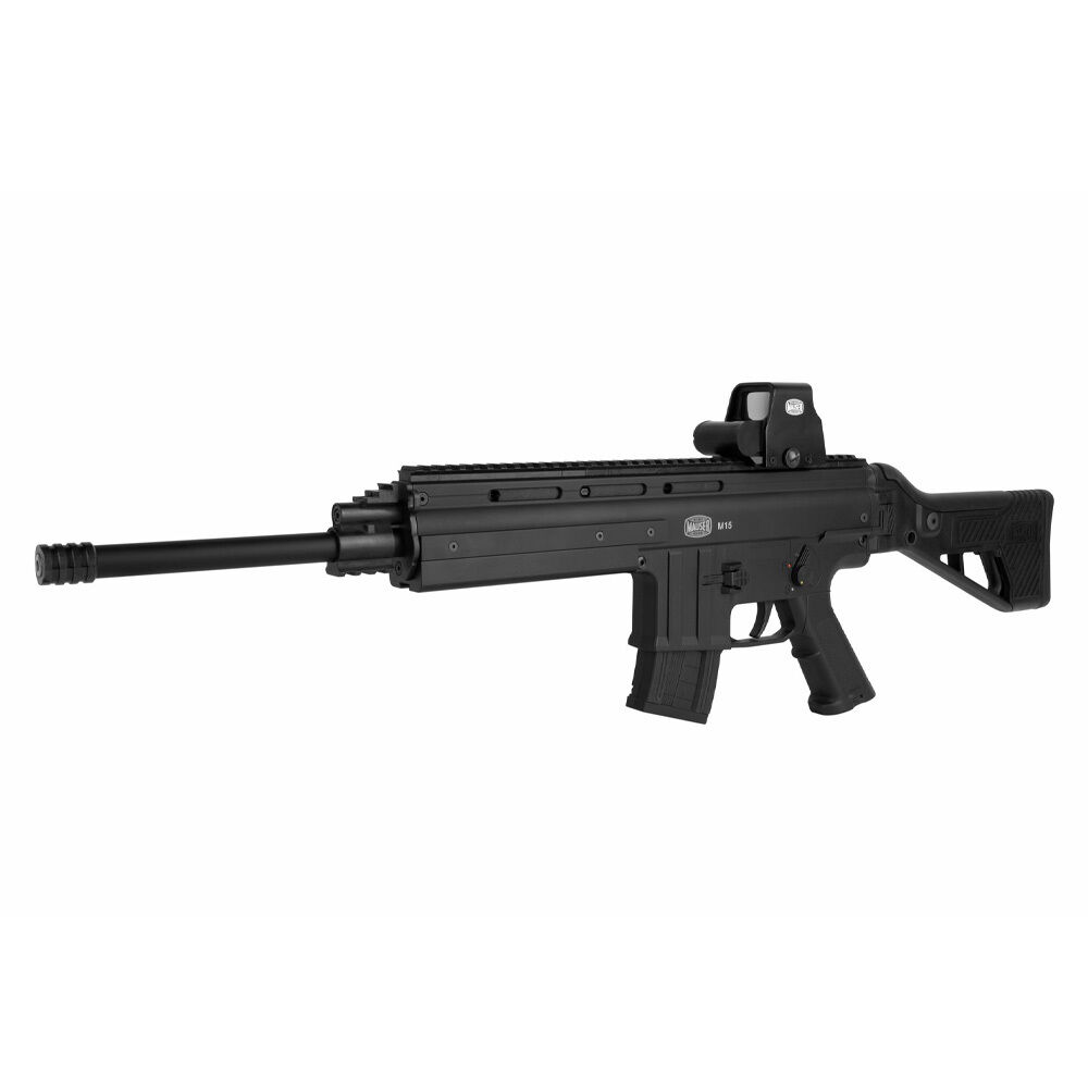 Die Mauser M15 Sport ist eine sportlich zugelassene halbautomatische Büchse im Kaliber .22lr HV inklusive Flip-Up Visier. Sie ist ausgestattet mit einem hochwertigem Upper Receiver aus Aluminium, einem leichten Lower Receiver aus glasfaserverstärktem Polymer und einem mehrstufig einstellbaren Klappschaft. Ab Werk wird die Mauser M15 Sport in dieser variante mit Flip-Up Visierung ausgeliefert.