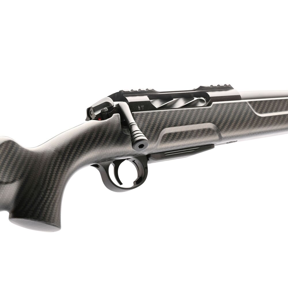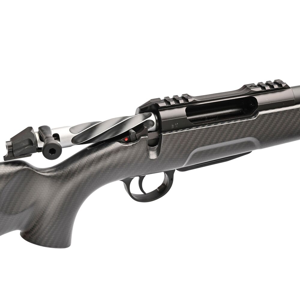 Repetierbüchse Rover G2 Carbon. Die sehr leichte Büchse - nur 2,5 kg - kommt mit einem patentiertem, aus einem Stück gefertigten Schaft aus Kohlefaser mit dämpfender Gummischaftkappe. Das Systemgehäuse ist aus 7075er-Aluminium mit Minimaltoleranz präzisionsgefräst und hat eine gestrahlte, seidenmatte Oberflächenveredelung mit anschließender Hartanodisierung. Der Zylinderverschluss ist aus hochfestem Stahl CNC-gefräst. Er ist verchromt und hat eine gewundene Kannelierung. Der kaltgehämmerte Lauf (Ø 22 mm) hat das bewährte MRR-Multi-Radial-Rifeling Innenprofil. Der Lauf ist mit einem Mündungsgewinde (M15x1) ausgestattet und somit vorbereitet für den Anbau eines Schalldämpfers. Auf dem Systemkasten ist eine Picatinny-Schiene verbaut um einen wiederholgenauen Optikwechsel durchführen zu können. Der Verschluss ist mit 3 Verriegelungswarzen ausgestattet und hat einen Öffnungswinkel von nur 60°, somit kann auch im Liegen ohne Probleme repetiert werden. Der Abzug ist einstellbar. Die Büchse hat ein herausnehmbares Einsteckmagazin mit Magazinkapazität von 3 Patronen.