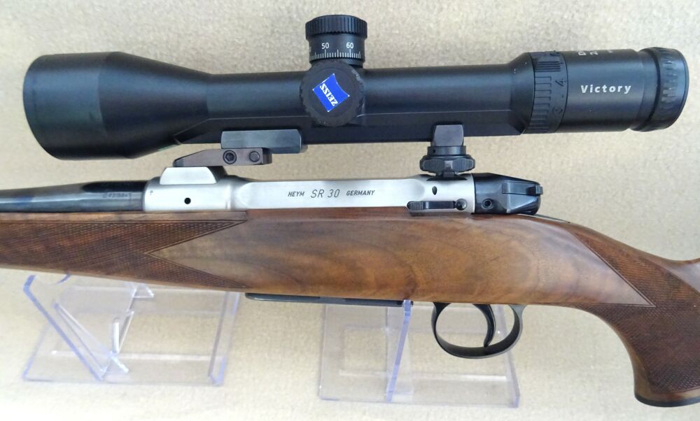 Wir bieten Ihnen eine gebraucht Waffe Der Repetierer des Hersteller Heym, Mod. SR30 im Kal. 8,5 x 63 R Reb ist in einem Nussbaum Holzschaft mit leichtem Schweinsrücken und Bayerischer Backe gearbei... ...weiterlesen