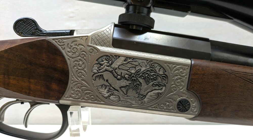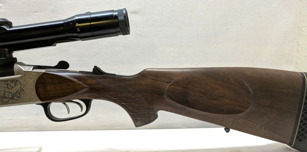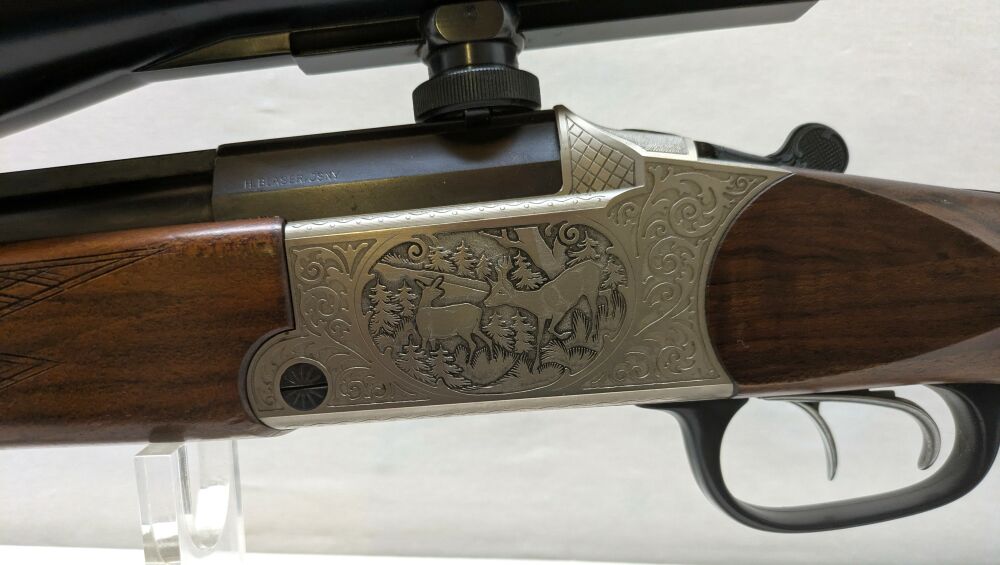 Horst Blaser Isny Bockbüchsflinte Kal.20/76-30.06 Spring. Lauflänge 60cm-Läufe blank vord.Abzug Stecher Gravur: Rehwild-Fuchs Zeiss Diavari Z 2,5-10x52 Abs,4 Schwenkmontage guter Erhaltungsz... ...weiterlesen