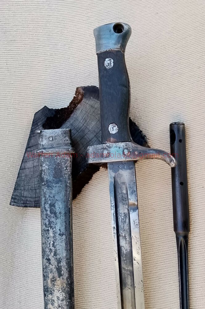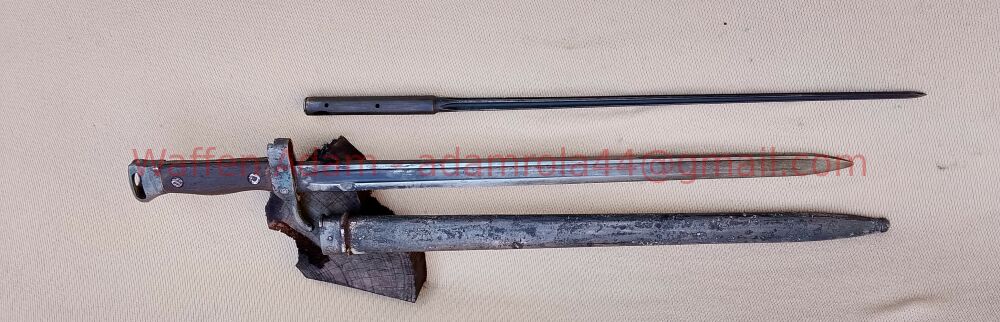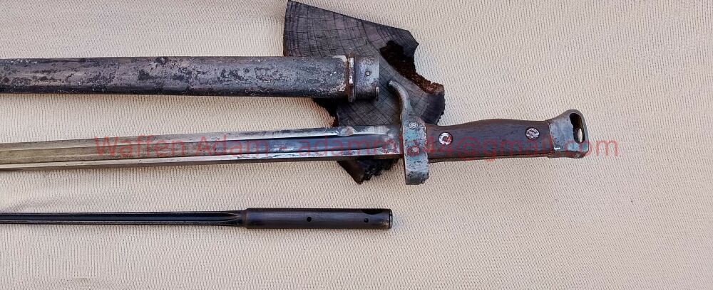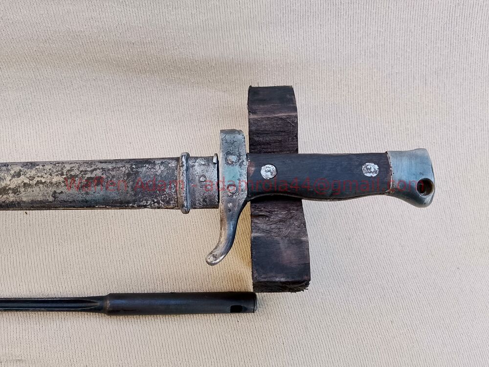 1. Frankreich Bajonett M1892 Mannlicher Barthier mit kurzer leicht gekrümmter Parierstange Zustand narbig ,mässig, Drücker fehlt. Klinge gut, Note 3.