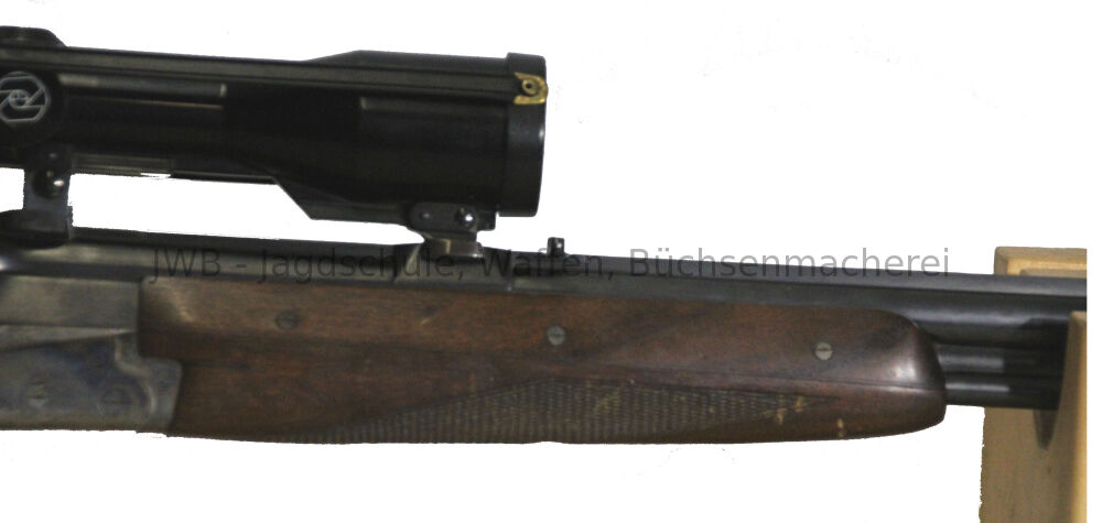 Auf dem Lauf mit Kaliber 7 x 57 R ist ein Zeiss Diatal 6 x 42 Abs. 1 montiert, auf dem Lauf 7 x 65 R ein VZF 1 - 6 x 42 Abs. 1.