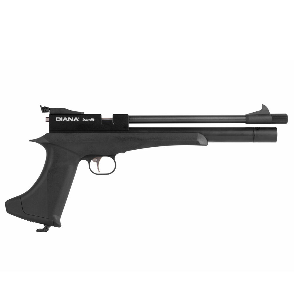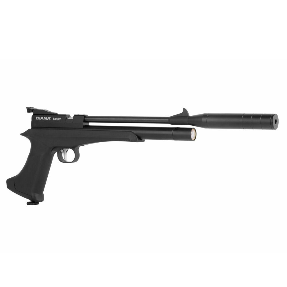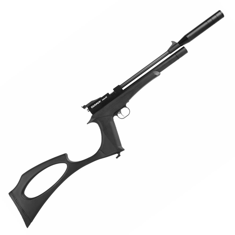 DIANA Bandit Black Pressluftpistole 4,5 mm DiaboloPCP Pistole mit abnehmbarer Schafterweiterung und integriertem RegulatorDas Diana Bandit Black ist eine Airgun mit Pressluftsystem im Kaliber 4,5 mm D... ...weiterlesen
