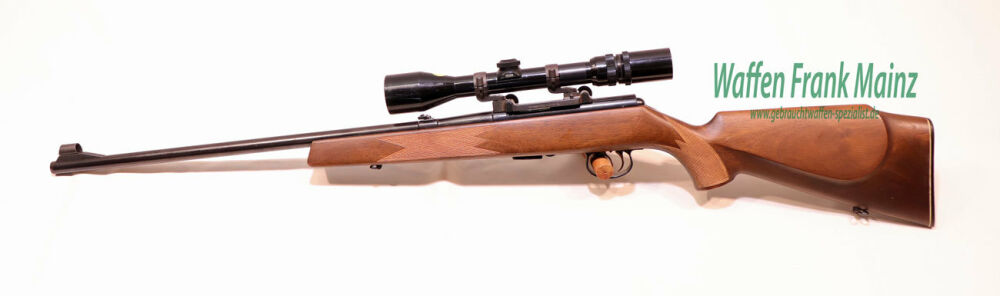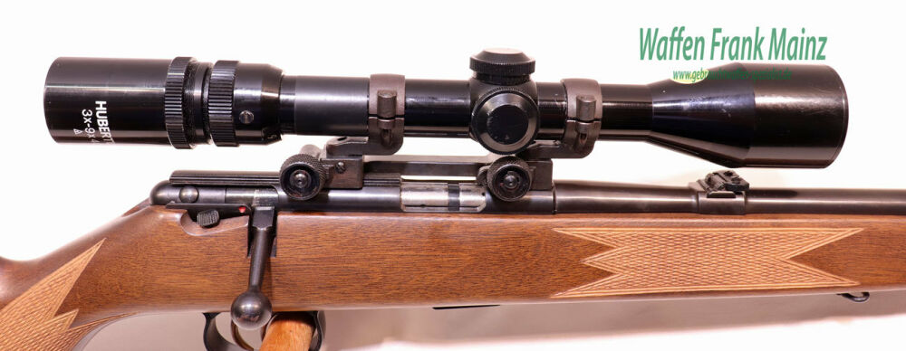 klassischer Kurvenspanner, mit herausnehmbarem 5+1 Schuss Stahlmagazin, deutscher Stecher, mit Original Anschütz-Stahl-Aufschubmontage mit ZF Hubertus 3-9x40 Absehen 4, geölter Nussbaumschaft mit handgeschnittener Fischhaut, Riemenbügel, mit langgezogener deutscher Backe für Rechtsschützen, Schaftlänge 360mm....für Schießstand und Schonzeit...