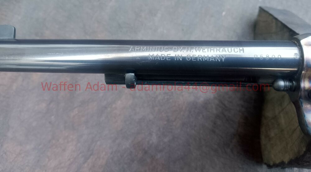 7,5" Lauflänge, glatte makellose Nussholz Griffschalen mit Firmenemblem in Gold. lNicht mehr gebauter Western Revolver in nahezu neuwertigem Zustand. gültiger Beschuss.