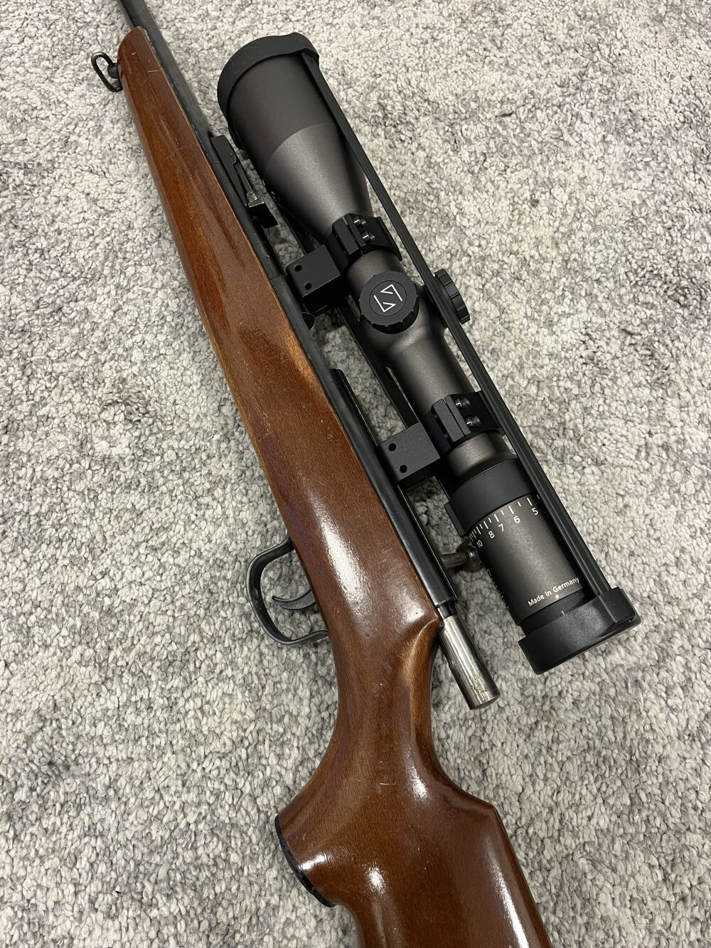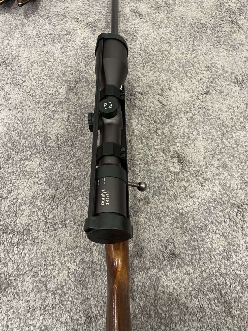 montiert ist ein Zeiss Duralyt 3-12 x 50 . Auf den 11 mm Schwalbenschwanz