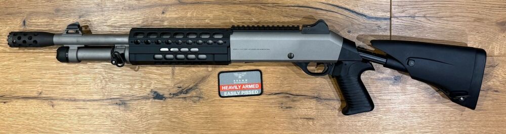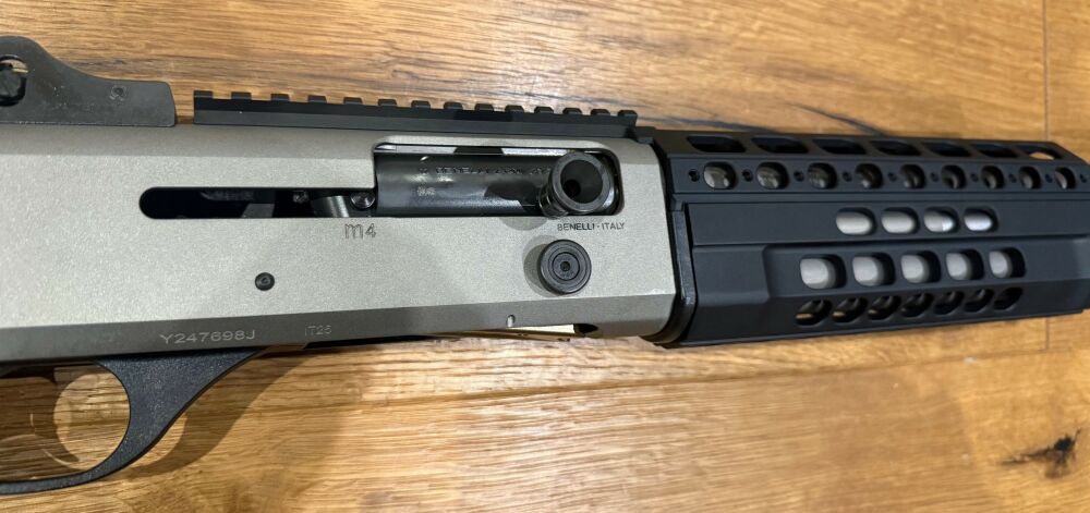 Sensationelles Sondermodell von Benelli Defense M4 A1 TS Titanium inklusive Door-Breacher und QD Riemenbügelösen! 14"/36cm Lauf (phosphatiert/ innen hartverchromt) mit Multichoke und Kornträg... ...weiterlesen
