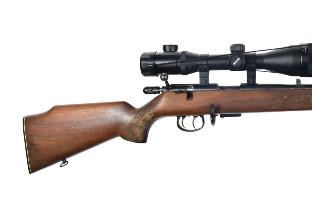 Diese Repetierbüchse im Kaliber .22 Magnum hat eine Gesamtlänge von 101 cm, eine Lauflänge von 56 cm sowie eine Schaftlänge von 36 cm. Die Waffe ist mit einem Walther Zielfernrohr ausgestattet und ver... ...weiterlesen