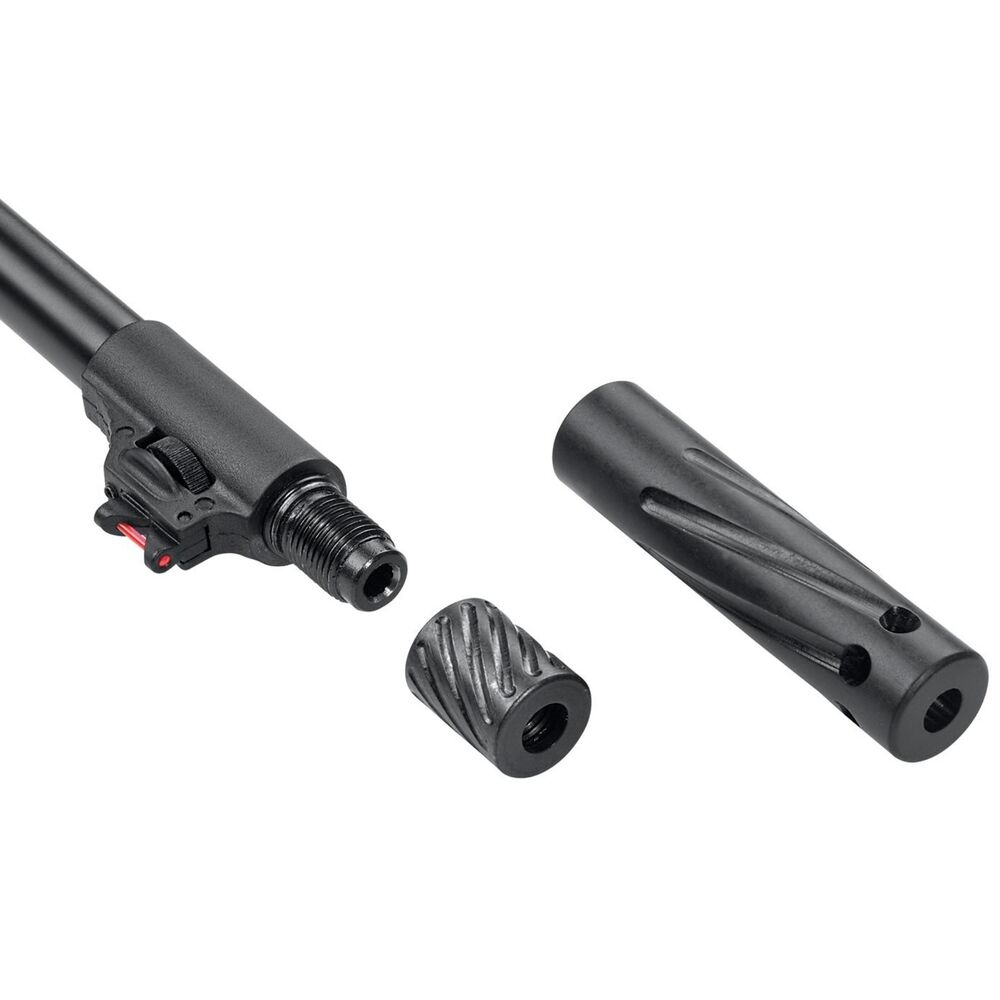 Ausgewogenes Design und ergonomische Griffgestaltung für Rechtsschützen. Gezogener Lauf, Abschraubbare Spannhilfe aus Aluminium. Integriertes Dämpfersystem. Kunststoff-Abzugs und automatischer Sicherung. Verstellbare Fiber-Optic-Visierung für optimale Präzision.