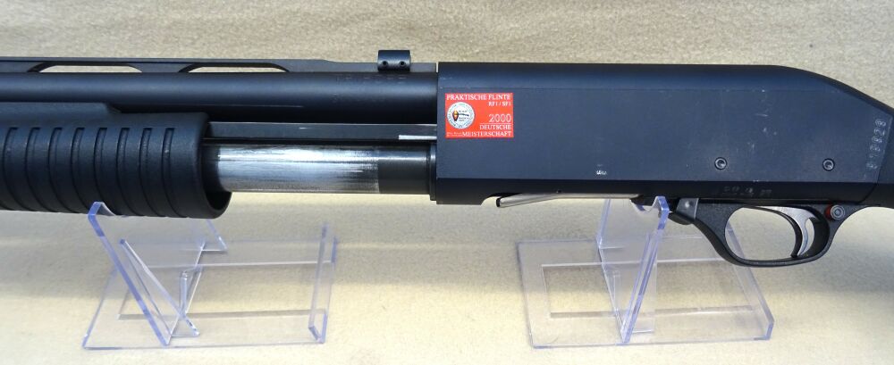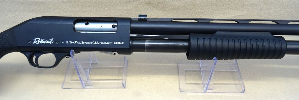 Die Vorderschaftrepetierflinte des Hersteller Rottweil, Mod.Praktikar Tribore, Kal. 12/76